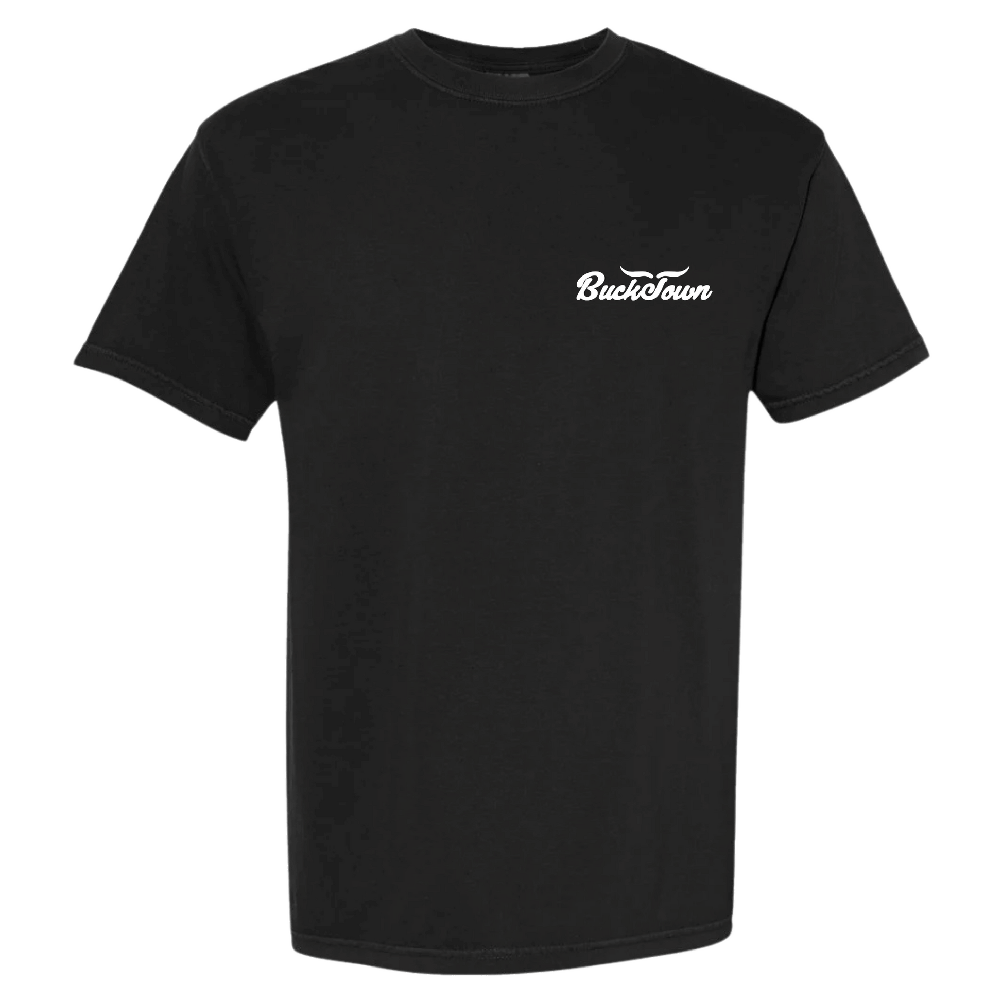 - Small front chest print with Bucktown logo